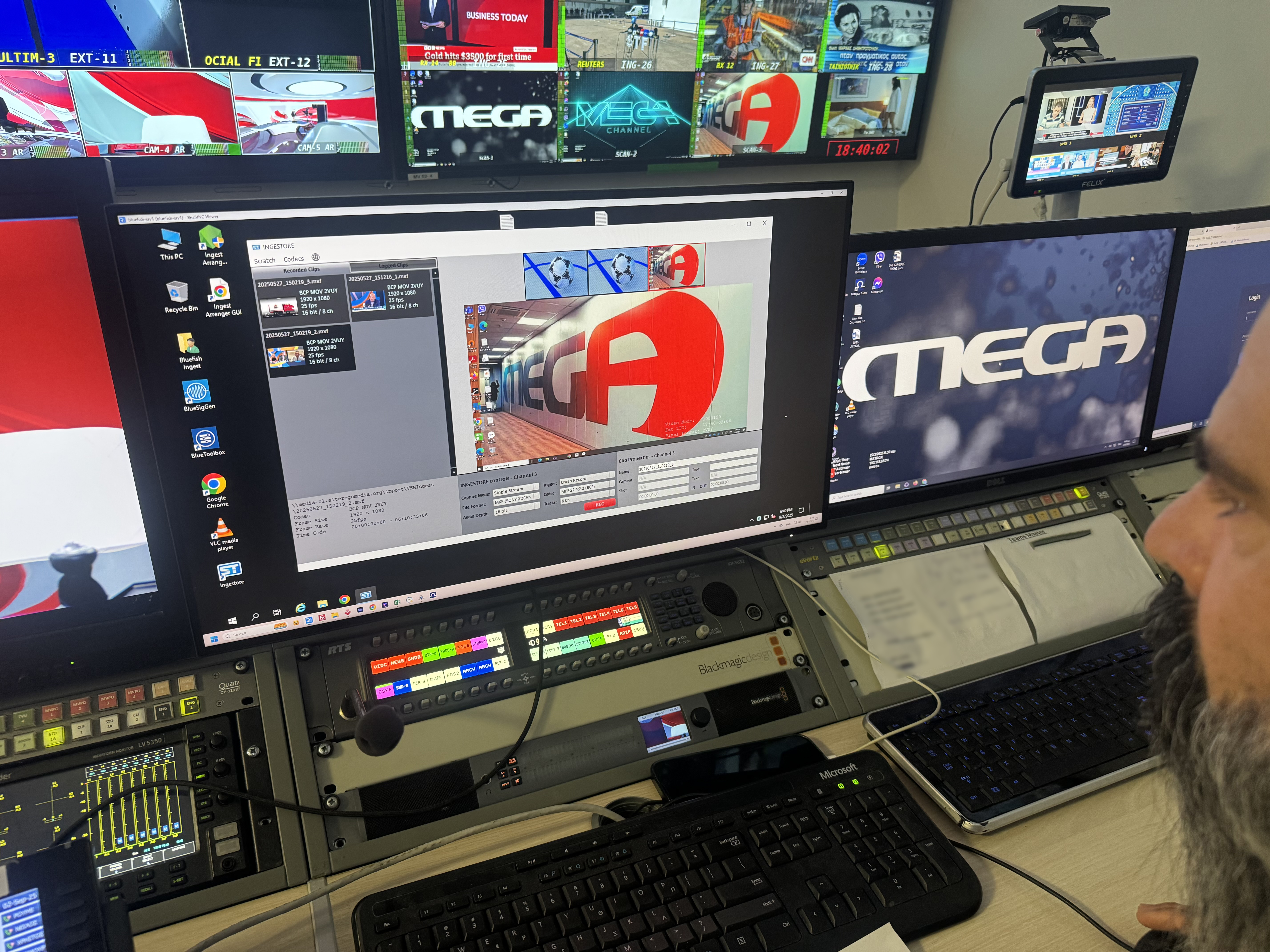 MEGA TV GREECE INTEGRATE BLUEFISH444 INGESTORE INTO THEIR MCR FOR MULTI CHANNEL SDI INGEST AND EDIT WHILE RECORD WITH ADOBE PREMIERE